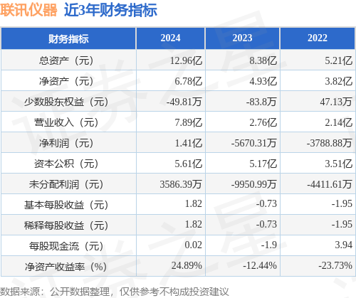 从目前公布的财报来看■•☆,联讯仪器2024年总资产为12.96亿元▪☆,净资产为6◆….78亿元;近3年净利润分别为1.41亿元(2024年),-5670.31万元(2023年),-3788▷.88万元(2022年)。详情见下表○▼☆: