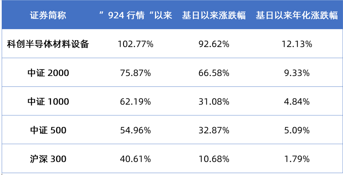 指数具备20CM涨停板优势●■▼,更快捕捉大涨行情弹性。科创半导体材料设备指数自2024年9月24日以来至2025年11月26日,累计上涨102.77%□▪▽,拉长时间看来,自指数基日以来年化涨幅超12%,跑赢A股大中小盘指数▪▷▼。