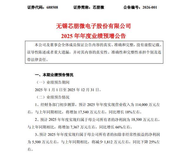 近期,芯朋微发布2025年年度业绩预告=,预计2025年公司实现营收11.4亿元左右,同比增长18%左右●-□;归母净利润为1■◁○.85亿元左右■,同比大幅增长66%左右▪•。