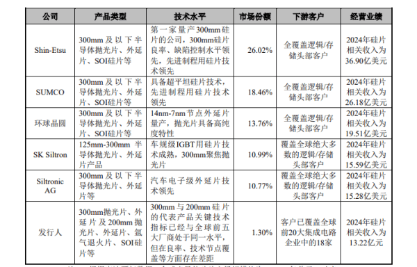 上海超硅表示,公司是全球极少数集晶体生长设备、软件系统与工艺技术于一体的企业之一。公司代表性产品的关键技术指标已与全球前五大厂商处于同一水平,整体技术水平处于国内领先、国际一流水平☆○,不过在良率、技术节点覆盖上仍存在一定差距。公司亦具备优质的客户资源●,已覆盖全球前20大集成电路企业中的18家,与前五大厂商不存在明显差距。