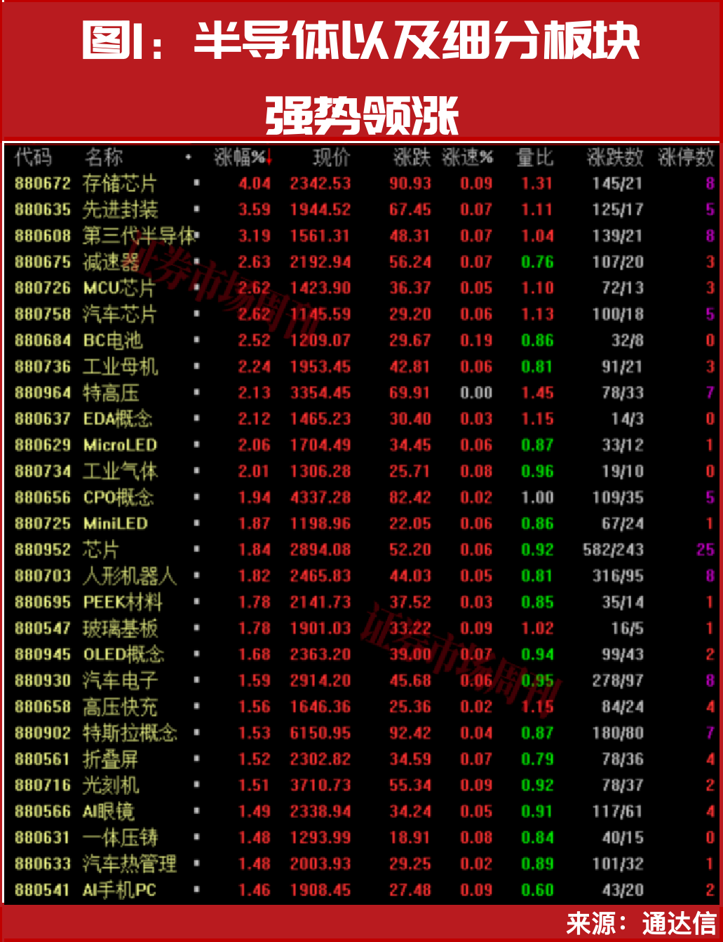 值得一提的是,不止佰维存储、金海通☆▷,半导体以及半导体细分板块均在近期启动了强势上涨▼,如存储芯片1月5日~1月16日累计大涨15%■,另外◆,第三代半导体、先进封装••●、汽车芯片、MCU芯片(微控制器)、光刻机等也均有强势表现(见图1)。