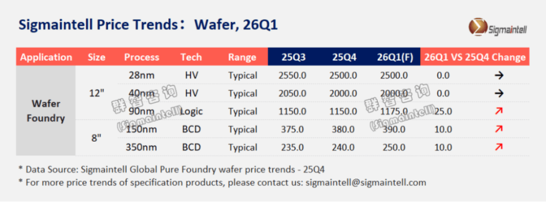 12英寸方面,7nm及以下制程的主要代工公司台积电表示2026年先进制程涨幅将达3%至10%。这也是其连续第四年调升价格▽。