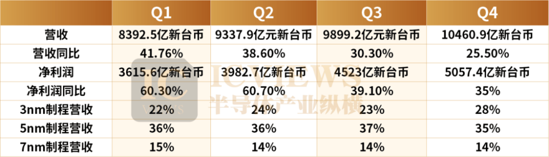 结合本次披露的 Q4 营收数据…◇◇,可完整梳理出2025 年全年营收情况,台积电全年营收1224.2亿美元,同比增长35.9%•;EPS 66.25新台币,增长46●◆.4%…•。