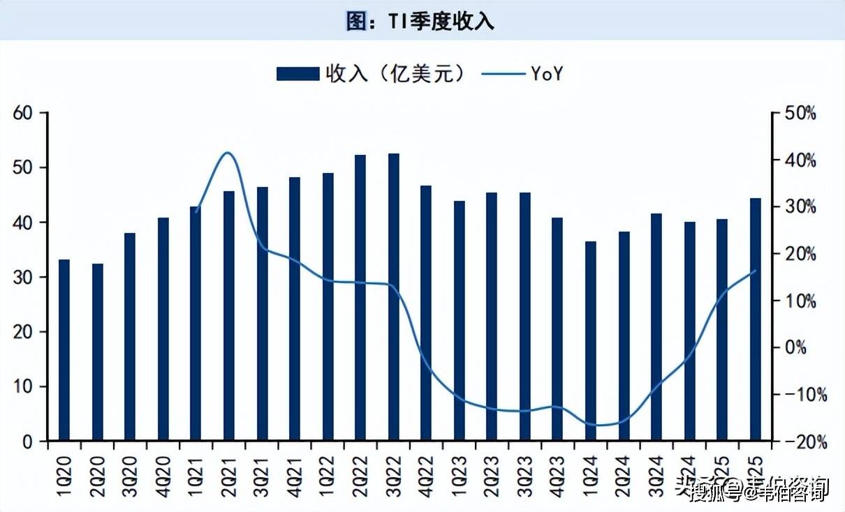 短期去库存结束,周期向上:TI1Q25营收在连续九个季度同比下降后首季同比转正,2Q25继续同比正增长,其认为周期性复苏强劲。