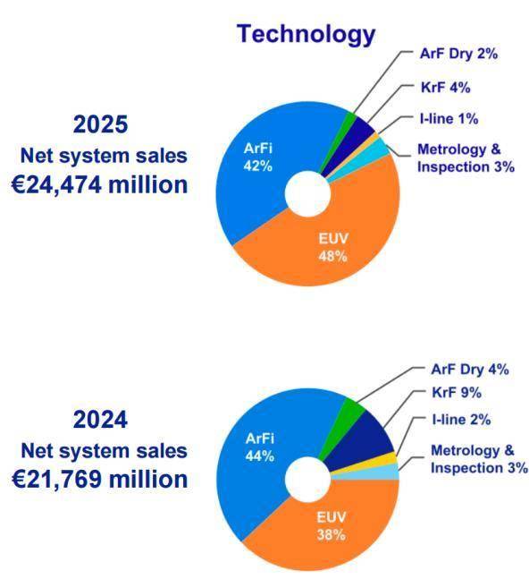 EUV在系统收入中的占比从2024年的38%上升至48%